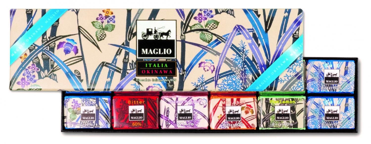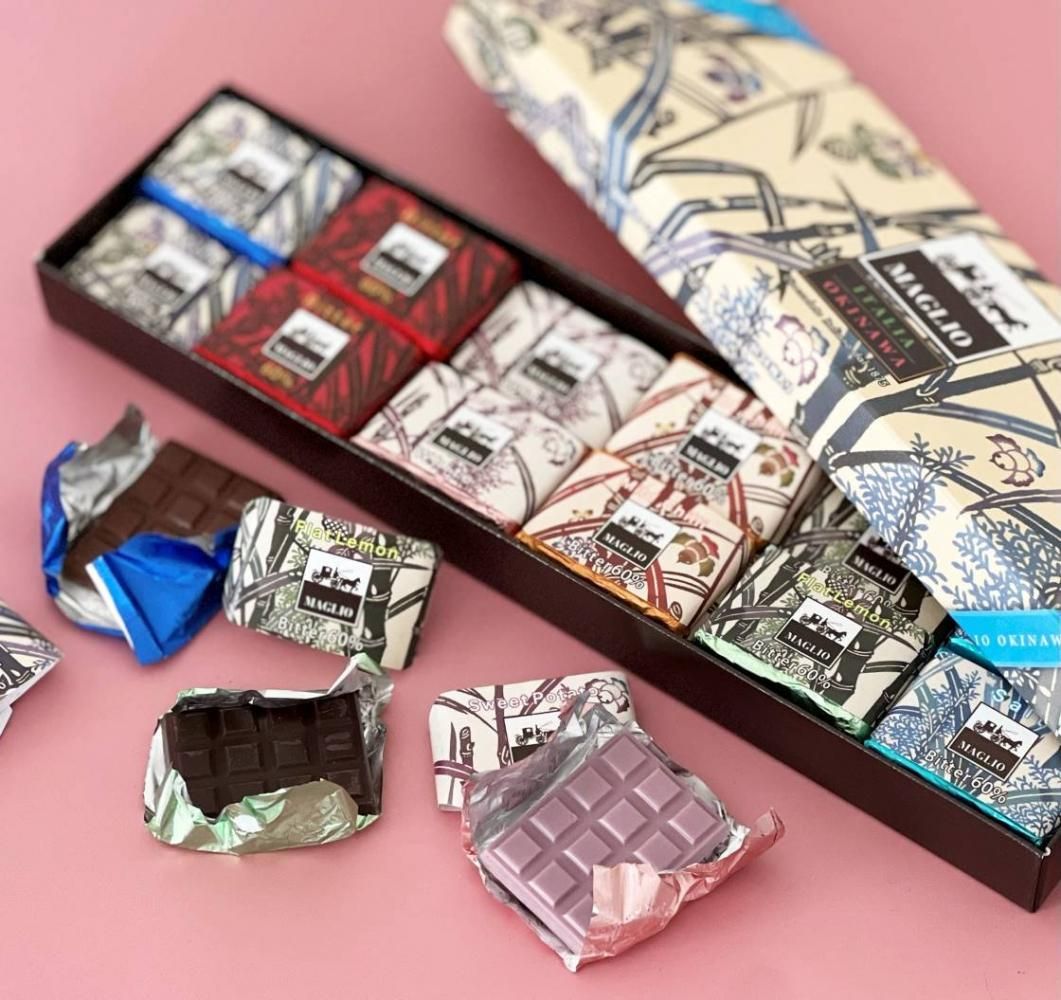 (ビター×4枚、ミルク×4枚、シークワーサー×4枚、塩×4枚、紅芋×4枚、島唐辛子×4枚)