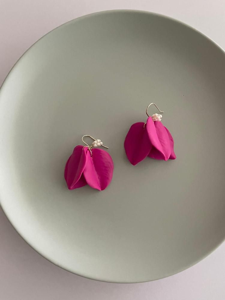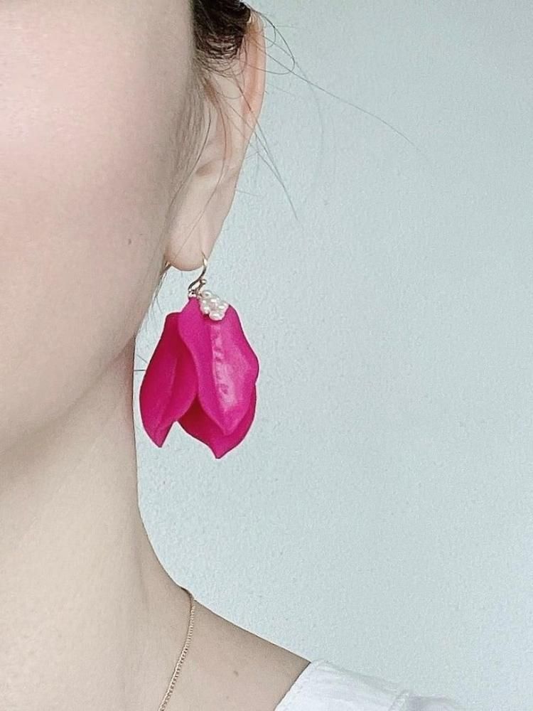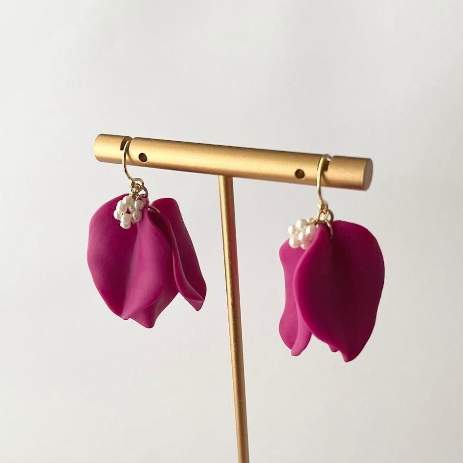 沖縄の太陽の下で鮮やかに咲くブーゲンビリアをモチーフにした、大ぶりのピアスです。